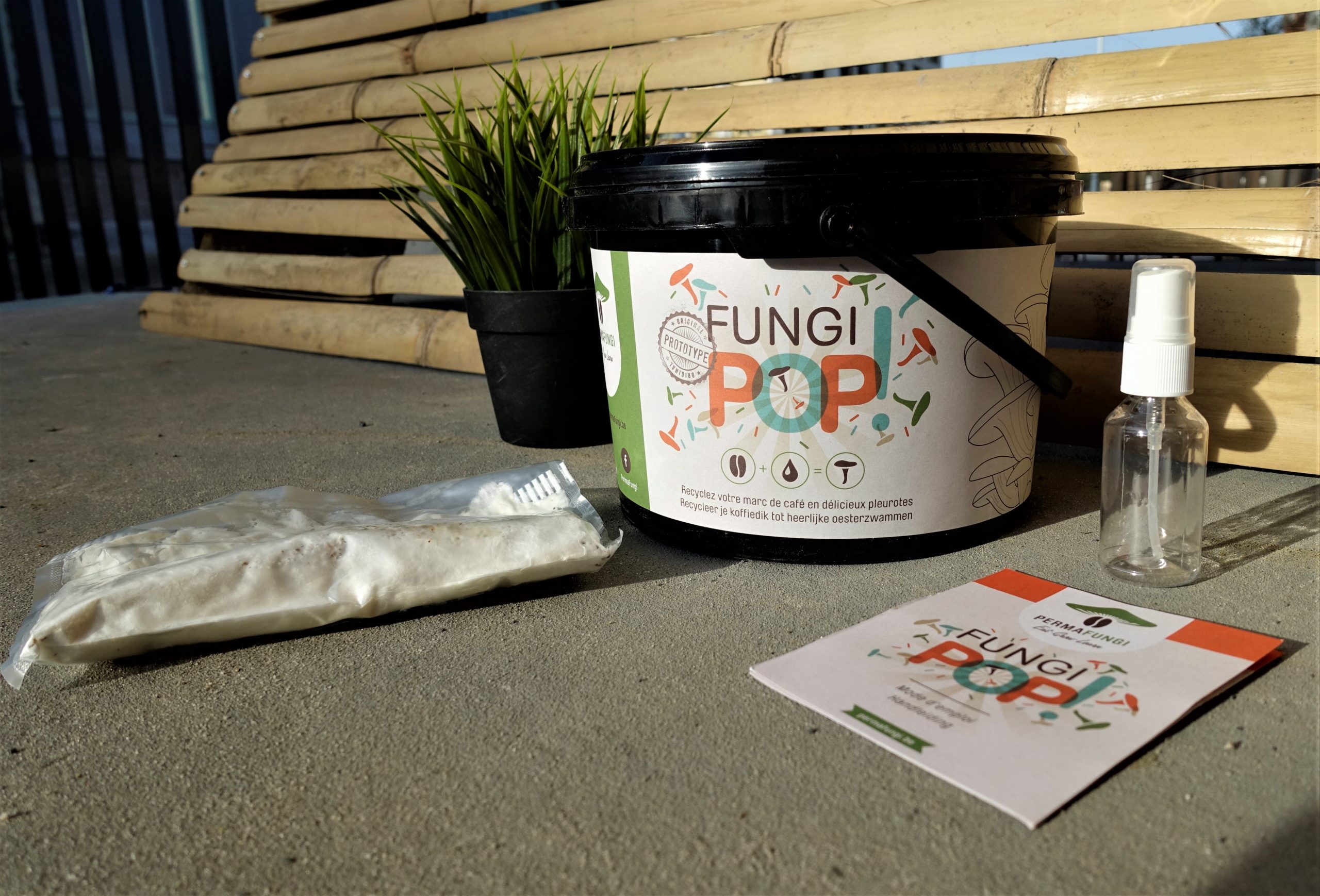 Les Fungi Pops contiennent un sachet de semences (mycélium de pleurotes), un spray pour les arroser et un mode d’emploi.